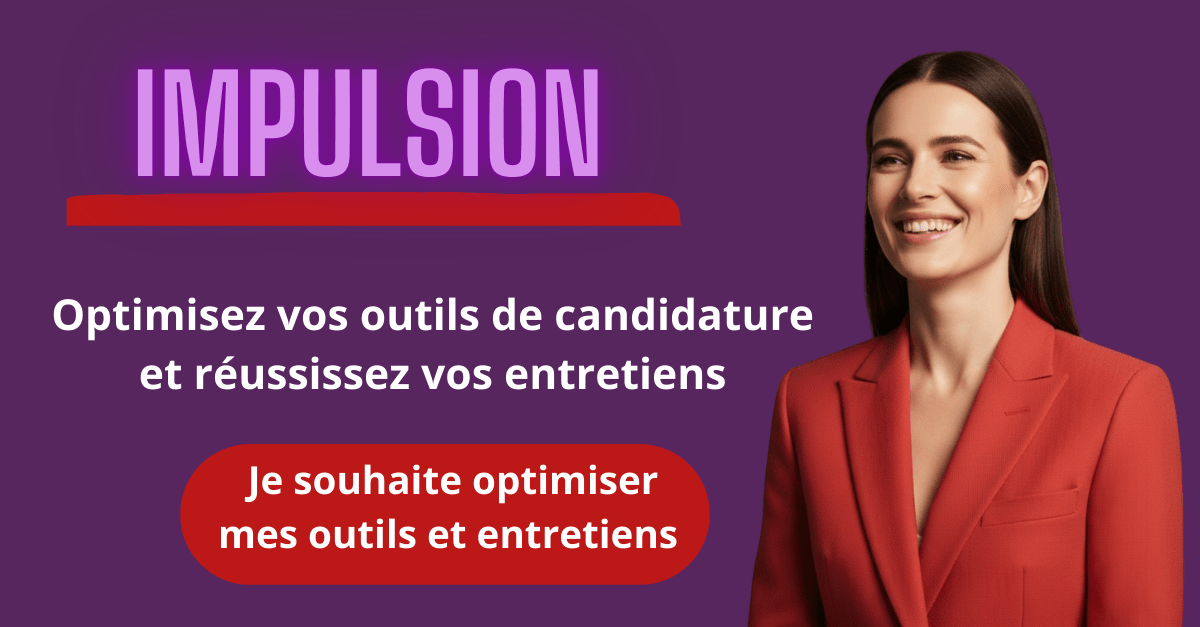 Si vous sentez que vos outils de candidature ne reflètent pas pleinement votre potentiel ou que vos entretiens ne vous permettent pas de décrocher le poste de vos rêves, le Coaching Impulsion est fait pour vous.